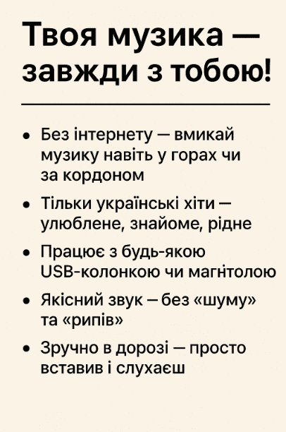 Слухай хіти скрізь, де є USB-порт.